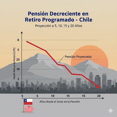 Retiro Programado: Una Pensión Proyectada a 5, 10, 15 y 20 Años. Es una modalidad de pensión variable chilena administrada por las AFP que se recalcula anualmente. Se caracteriza por una tendencia general a la baja a largo plazo debido a la disminución del saldo acumulado, la rentabilidad de los fondos y la actualización de la expectativa de vida del titular. Permite al pensionado mantener la propiedad y herencia de sus fondos, así como la flexibilidad de cambiarse a una Renta Vitalicia en cualquier momento.